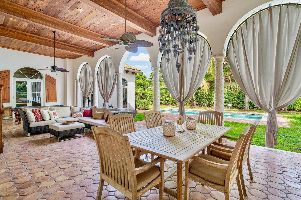 物业位于一块罕见的超大转角地块之上,尺寸为 100 英尺 × 160 英尺,占地约 16,000 平方英尺,为居住者提供充足的私密性与从容空间。住宅由知名建筑师 Carlos Martin 亲自设计,整体风格汲取南欧建筑灵感,柔和的香草色灰泥外墙、经典桶形瓦屋顶,以及面向泳池的超大露台廊檐,共同勾勒出优雅而隽永的外观。