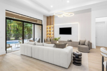 这栋位于布里奇斯庄园内的住宅经过全面翻新,实属难得一见的珍品,照片已令人惊艳,而亲眼所见更是魅力四射!步入屋内,首先映入眼帘的是一面令人叹为观止的定制灯光装饰墙,瞬间便会让人屏息凝神。厨房配备了华丽的泰姬陵台面、专业级的维京电器、手工打造的橱柜(内置LED照明)以及堪比专业咖啡师的咖啡吧台。精美的木工、玻璃门橱柜和嵌入式酒柜汇聚成一个气派非凡的吧台,其设计显然以娱乐休闲为核心。媒体中心堪称一件艺术品,让您每晚窝在沙发上都能享受极致的舒适体验。全新的地板流畅衔接,与嵌入式衣柜和豪华瓷砖浴室相得益彰,为您打造极致的放松和舒适感。此外,这栋拎包入住的豪宅还配备了私人办公室、宽敞的楼上阁楼、防冲击玻璃、全屋发电机、环氧树脂车库地板以及新铺瓷砖的泳池。