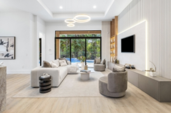 这栋位于布里奇斯庄园内的住宅经过全面翻新,实属难得一见的珍品,照片已令人惊艳,而亲眼所见更是魅力四射!步入屋内,首先映入眼帘的是一面令人叹为观止的定制灯光装饰墙,瞬间便会让人屏息凝神。厨房配备了华丽的泰姬陵台面、专业级的维京电器、手工打造的橱柜(内置LED照明)以及堪比专业咖啡师的咖啡吧台。精美的木工、玻璃门橱柜和嵌入式酒柜汇聚成一个气派非凡的吧台,其设计显然以娱乐休闲为核心。媒体中心堪称一件艺术品,让您每晚窝在沙发上都能享受极致的舒适体验。全新的地板流畅衔接,与嵌入式衣柜和豪华瓷砖浴室相得益彰,为您打造极致的放松和舒适感。此外,这栋拎包入住的豪宅还配备了私人办公室、宽敞的楼上阁楼、防冲击玻璃、全屋发电机、环氧树脂车库地板以及新铺瓷砖的泳池。