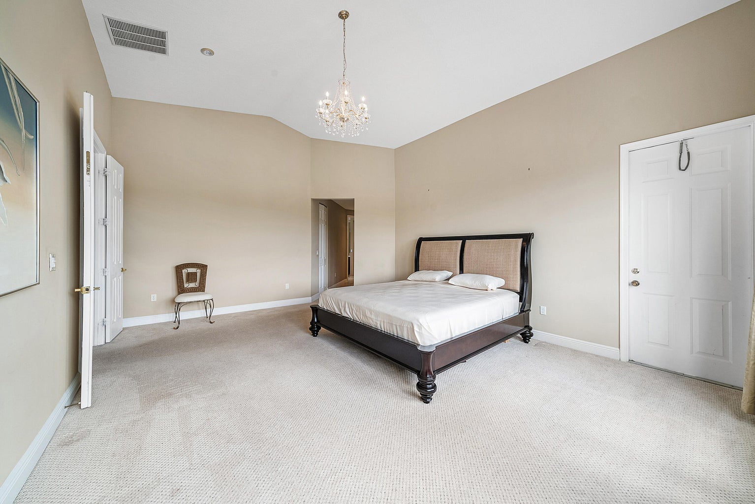 铺设地毯的楼梯通向二层私人空间,主卧可俯瞰湖景并设有私密阳台。主卧衣帽间宽敞到堪比一间卧室!